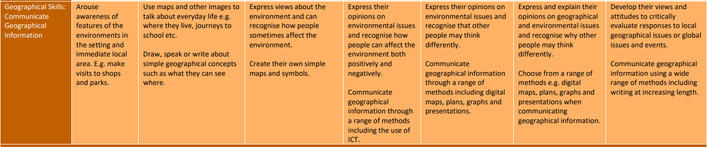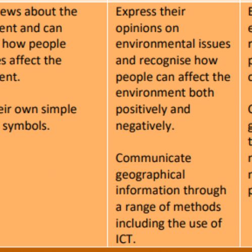 - To develop interest and enjoyment of geographical experiences and build confidence and understanding.