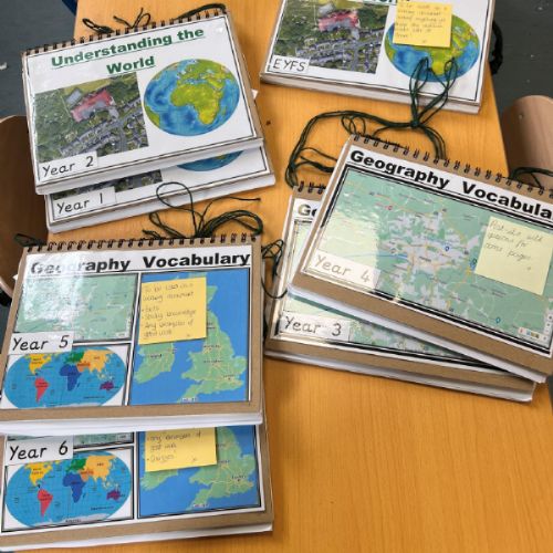 We use knowledge organisers, where children have access to key knowledge, language and meanings to understand Geography and to use these skills across the curriculum. At Holme Slack we believe vocabulary is key to children accessing lessons fully, we have created geographical vocabulary log books which is appropriate and accurate for each year group, these develop and evolve from EYFS to KS1 and through to KS2.